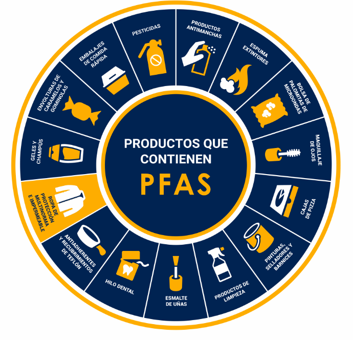 Los productos que contienen PFAS desprenden sustancias químicas nocivas a lo largo de su ciclo de vida. Estas sustancias se propagan en la naturaleza a través, por ejemplo, de las aguas subterráneas y el agua potable. Se ha demostrado que las PFAS tienen importantes efectos adversos en los seres humanos y los animales y pueden provocar, entre otras cosas, varios tipos de cáncer, problemas reproductivos, disfunción del sistema inmunitario y daños hepáticos y renales.