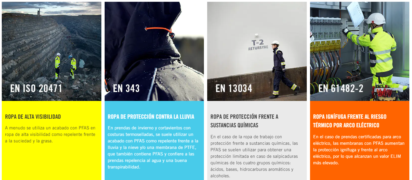 Es habitual el uso de PFAS en ropa de protección con las siguientes certificaciones: